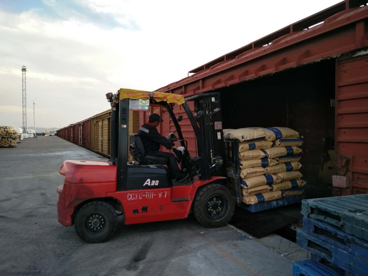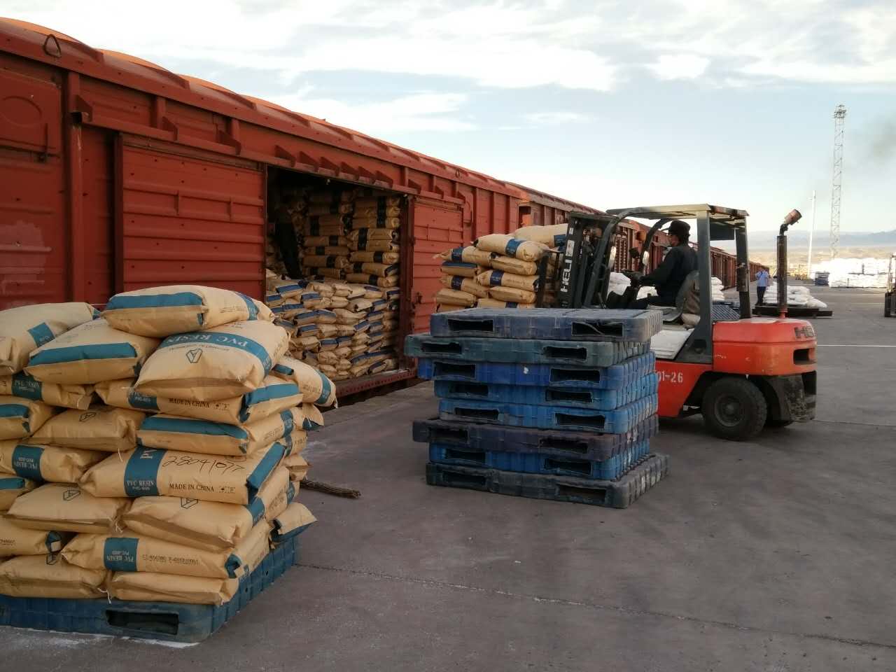 2016年9月9-10日,新疆中泰化學(xué)股份有限公司出口的袋裝聚氯乙烯整列棚車,在阿拉山口綜合保稅區(qū)內(nèi)的地平線鐵路專用線成功裝車。此次共裝58噸/車的貨物計(jì)30車、63噸/車的貨物計(jì)10車,共40節(jié)哈方車皮,總重量為2730噸,終到站為烏茲別克斯坦的塔什干站。