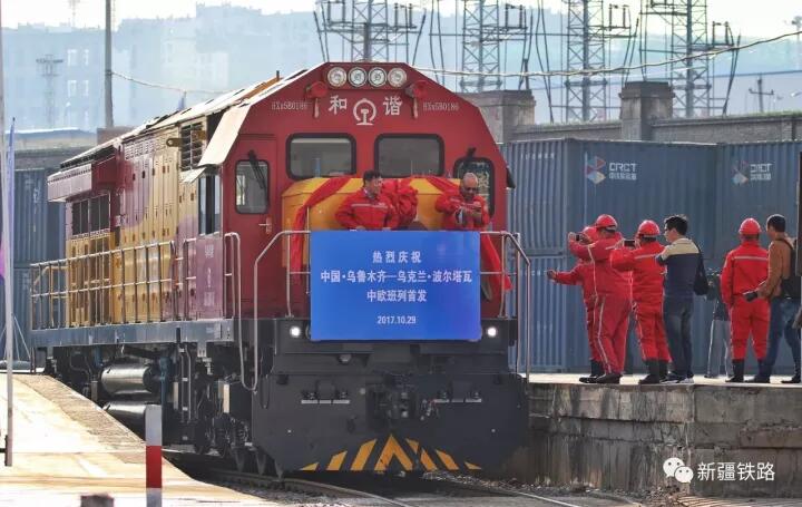 2017年10月29日12時(shí),由我新疆阿拉山口捷安物流有限公司運(yùn)輸代理的、新疆貝肯能源工程股份有限公司出口的一套石油鉆井設(shè)備,搭載著47節(jié)的X9081次貨物列車駛出中歐班列烏魯木齊集結(jié)中心。列車將由阿拉山口出境,途經(jīng)哈薩克斯坦、俄羅斯,歷時(shí)15天、行程5100公里后,抵達(dá)烏克蘭波爾塔瓦市。